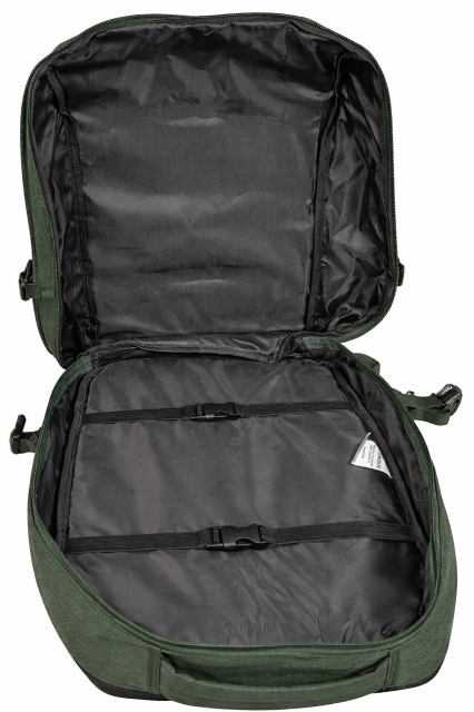 Просторное основное отделение с компрессионными ремнями для фиксации одежды.