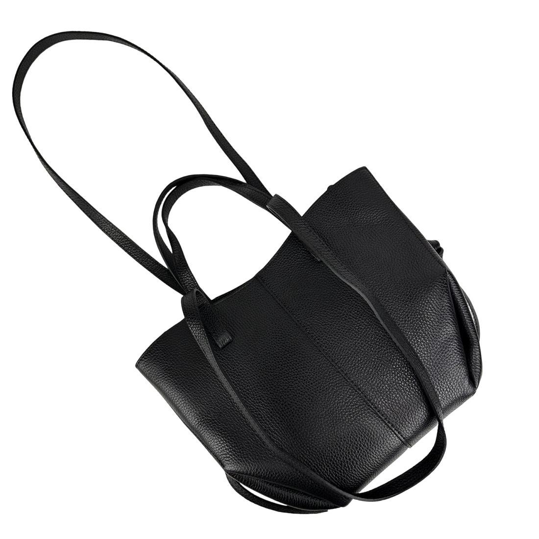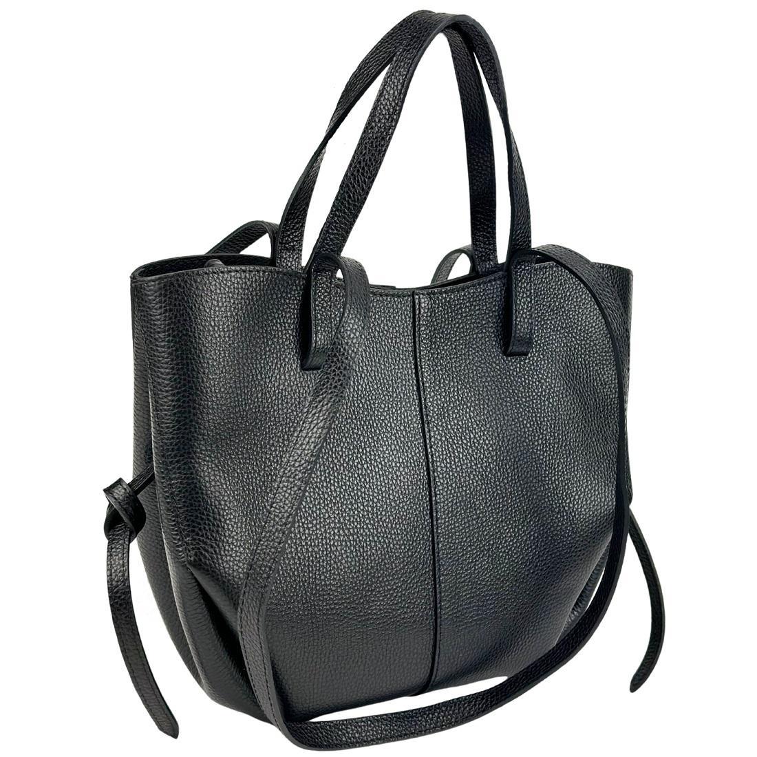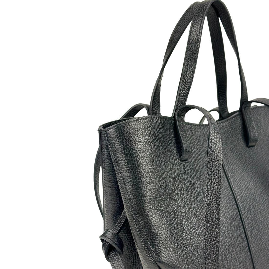 В сумке кожаные короткие ручки и длинные, для удобного ношения на плече.