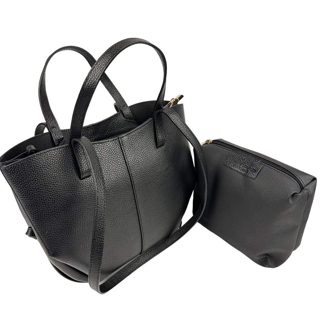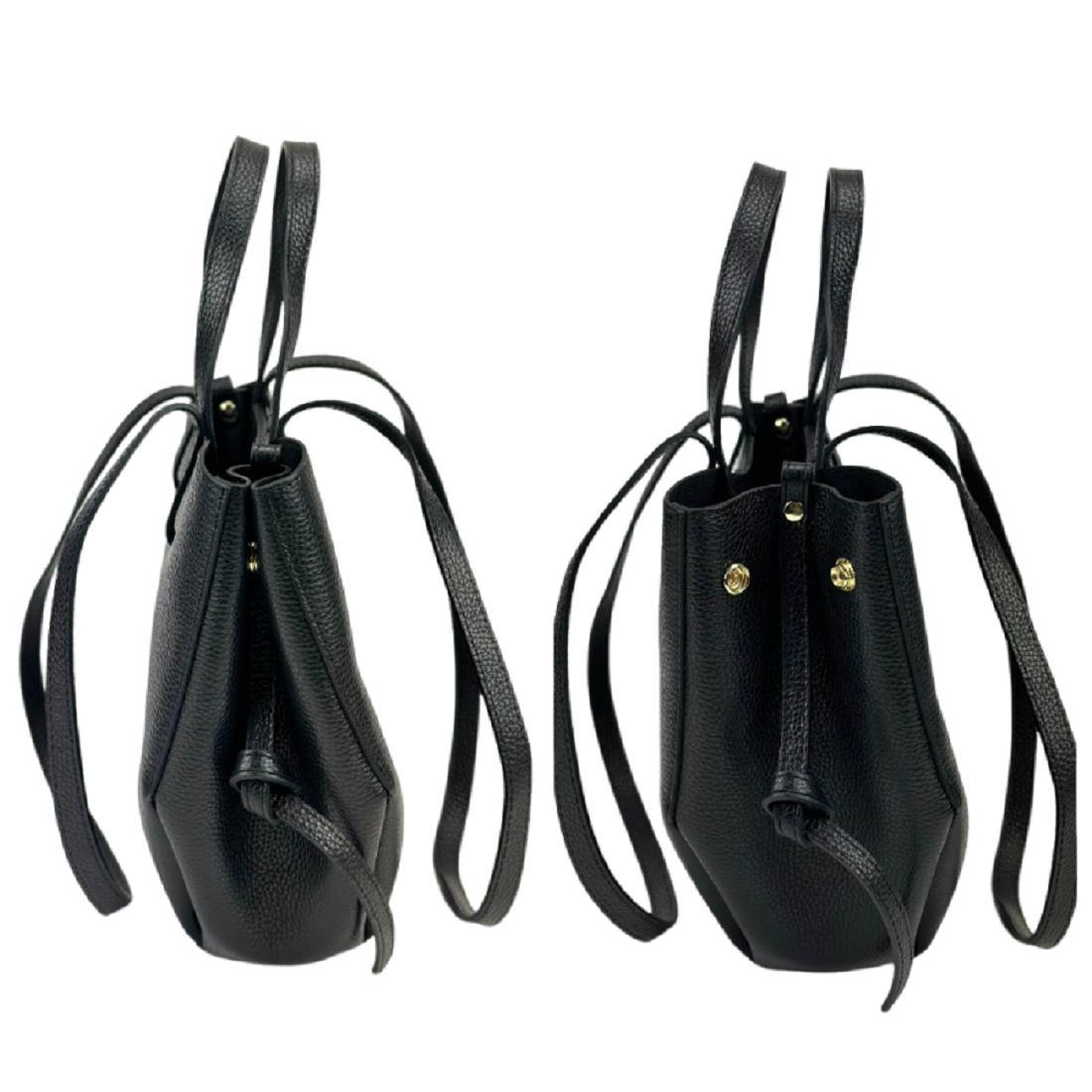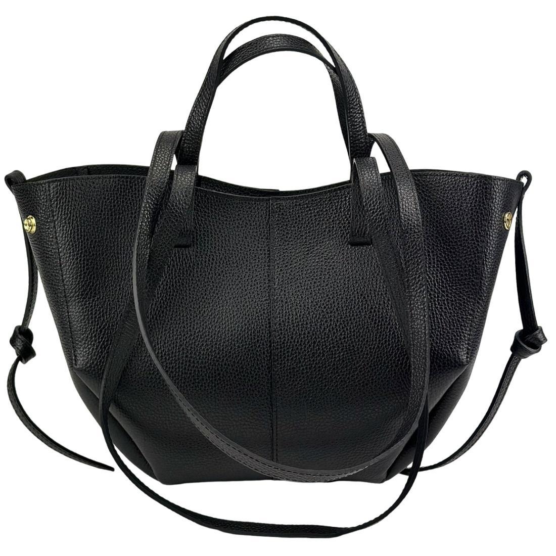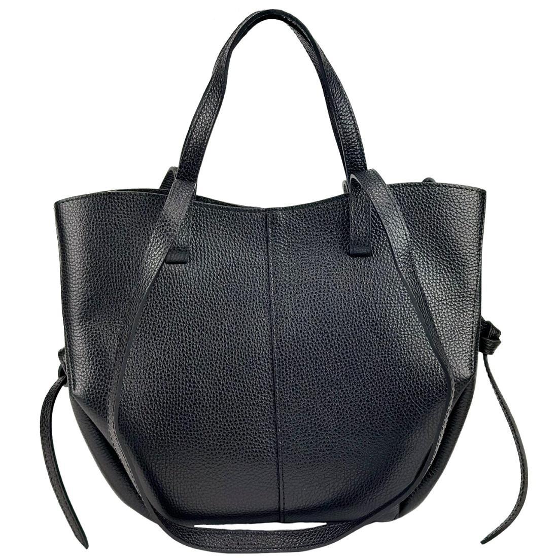 В сумке кожаные короткие ручки и длинные, для удобного ношения на плече.