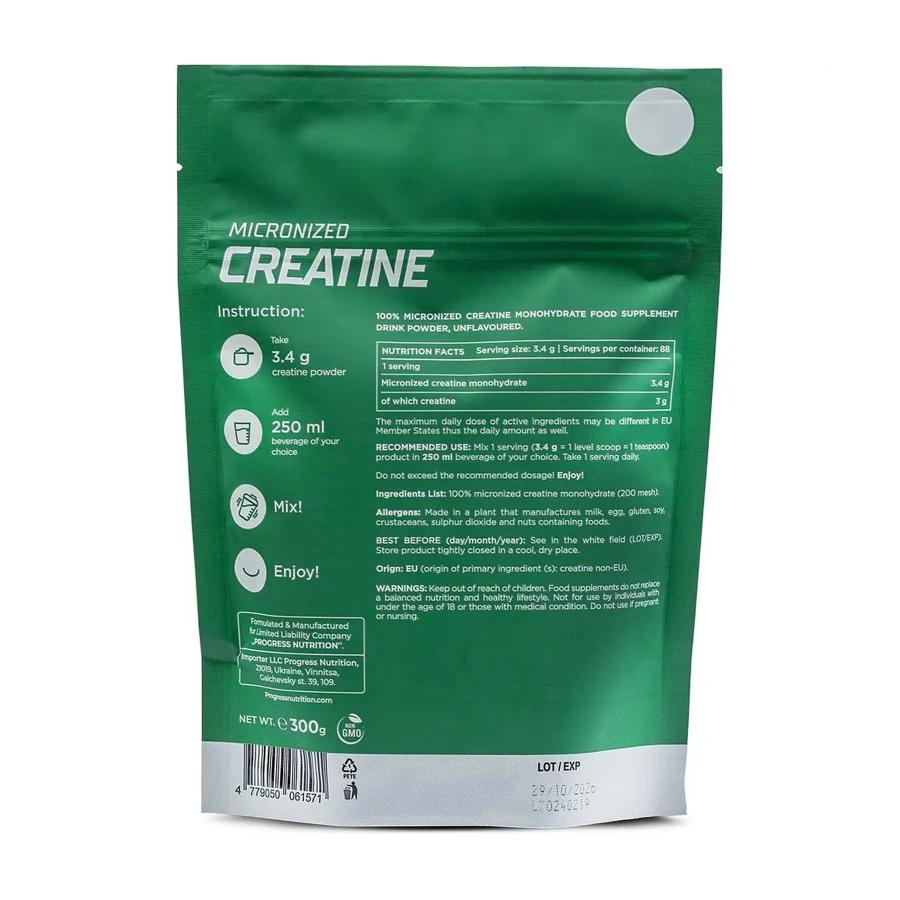 Progress Nutrition Creatine Monohydrate – моногидрат креатина в форме растворимого порошка. Прием добавки увеличивает запасы собственного АТФ, что позволяет тренироваться дольше и эффективнее. Продукт отлично подходит спортсменам-силовикам любого уровня подготовки.