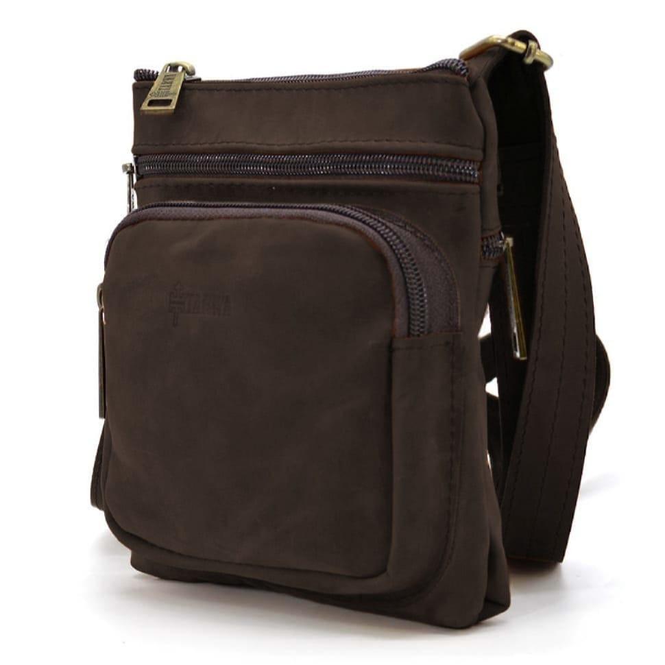 Мужская маленькая кожаная сумка на каждый день для самых необходимых вещей. Cумка через плечо мужская TARWA RС-1342-2-3md Коричневый crazy horse