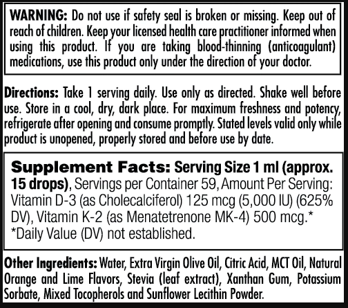 D3 K2 DropIns 125mcg - 2 oz Citrus