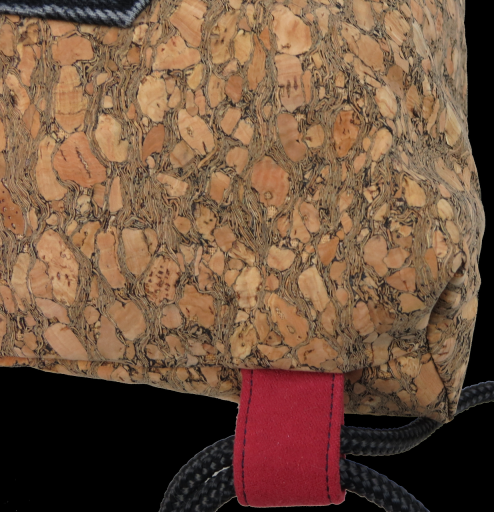 Сумка изготовлена из коттона внутри, коркового дерева снаружи, элементы сумки выполнены из натуральной кожи и коттона.