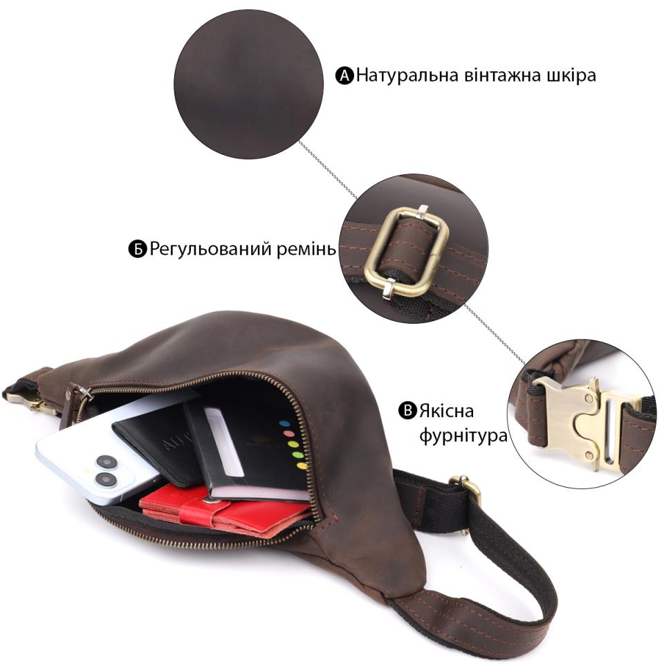 Характеристики: Добротная сумка бананка для мужчин из винтажной натуральной кожи Shvigel 23139 Коричневый