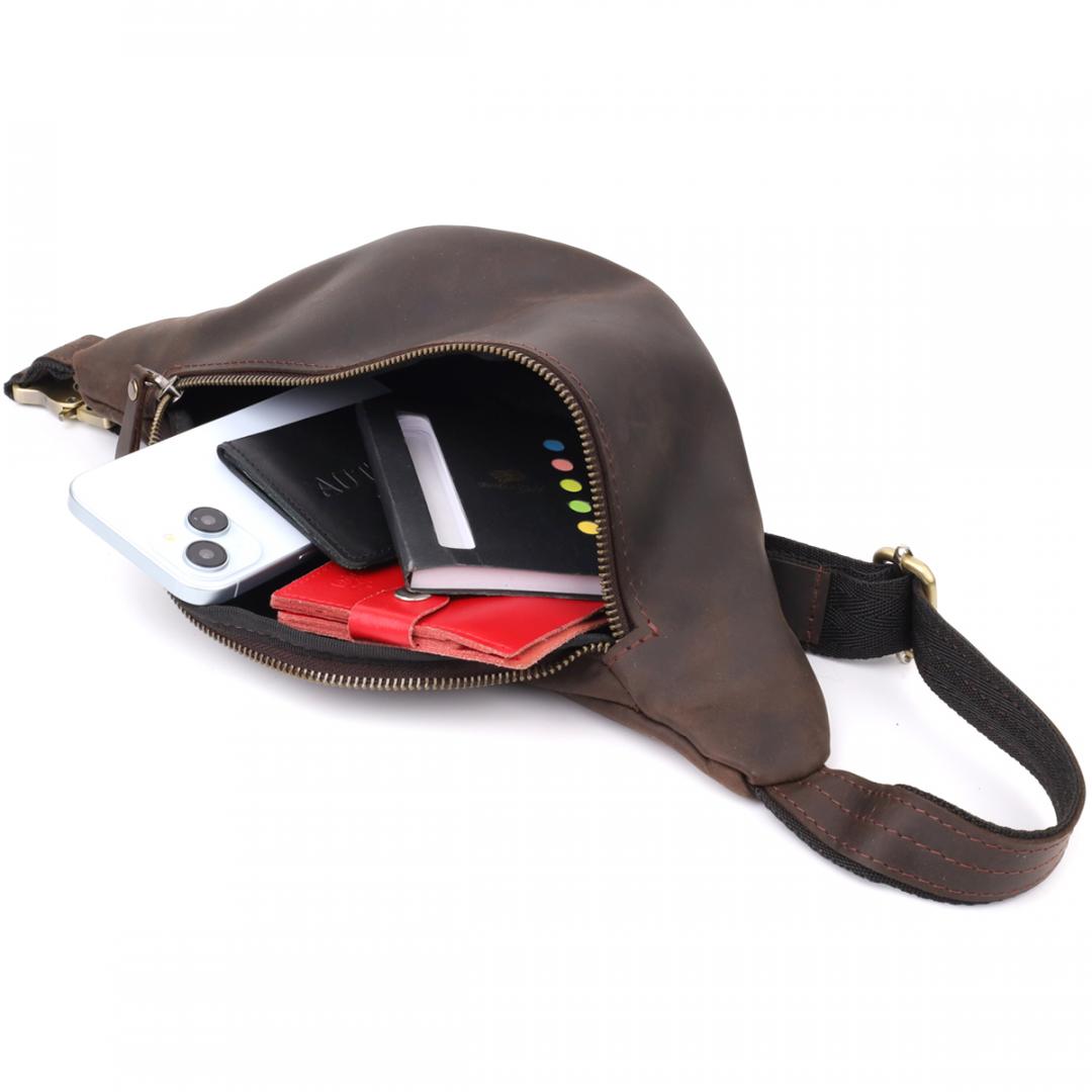 Добротная сумка бананка для мужчин из винтажной натуральной кожи Shvigel 23139 Коричневый