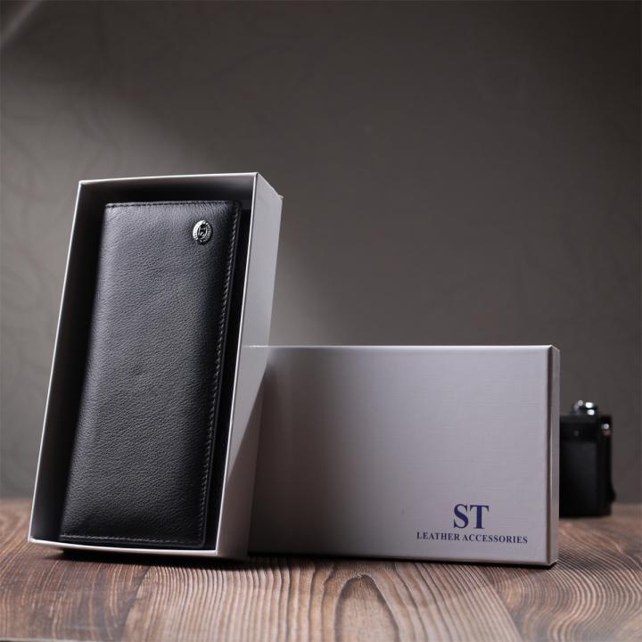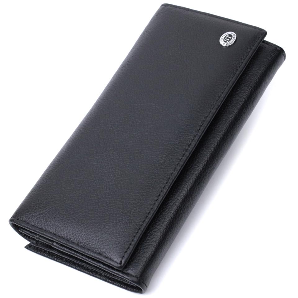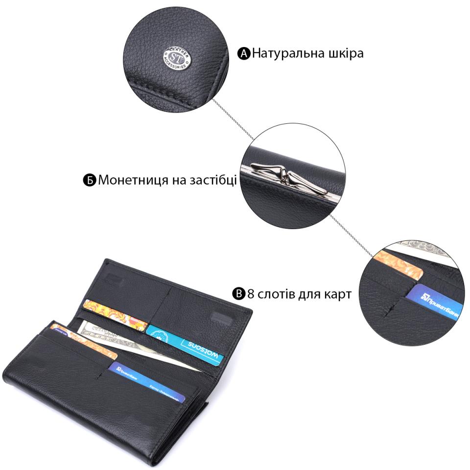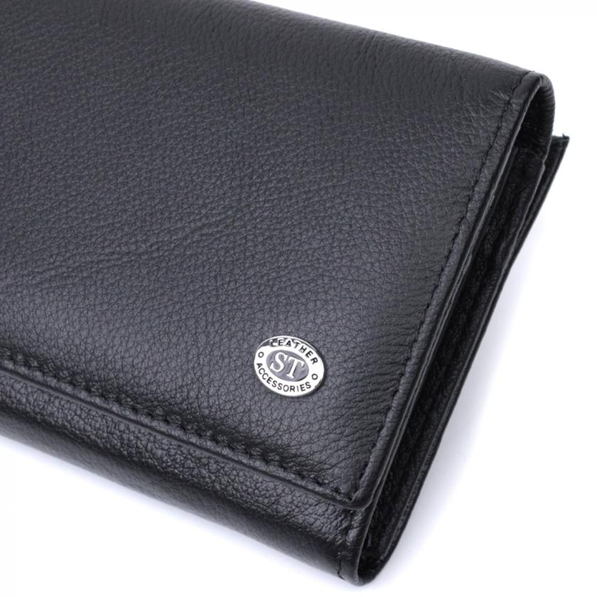 Характеристики: Добротное женское портмоне с карманом для монет из натуральной кожи ST Leather 22691 Черный