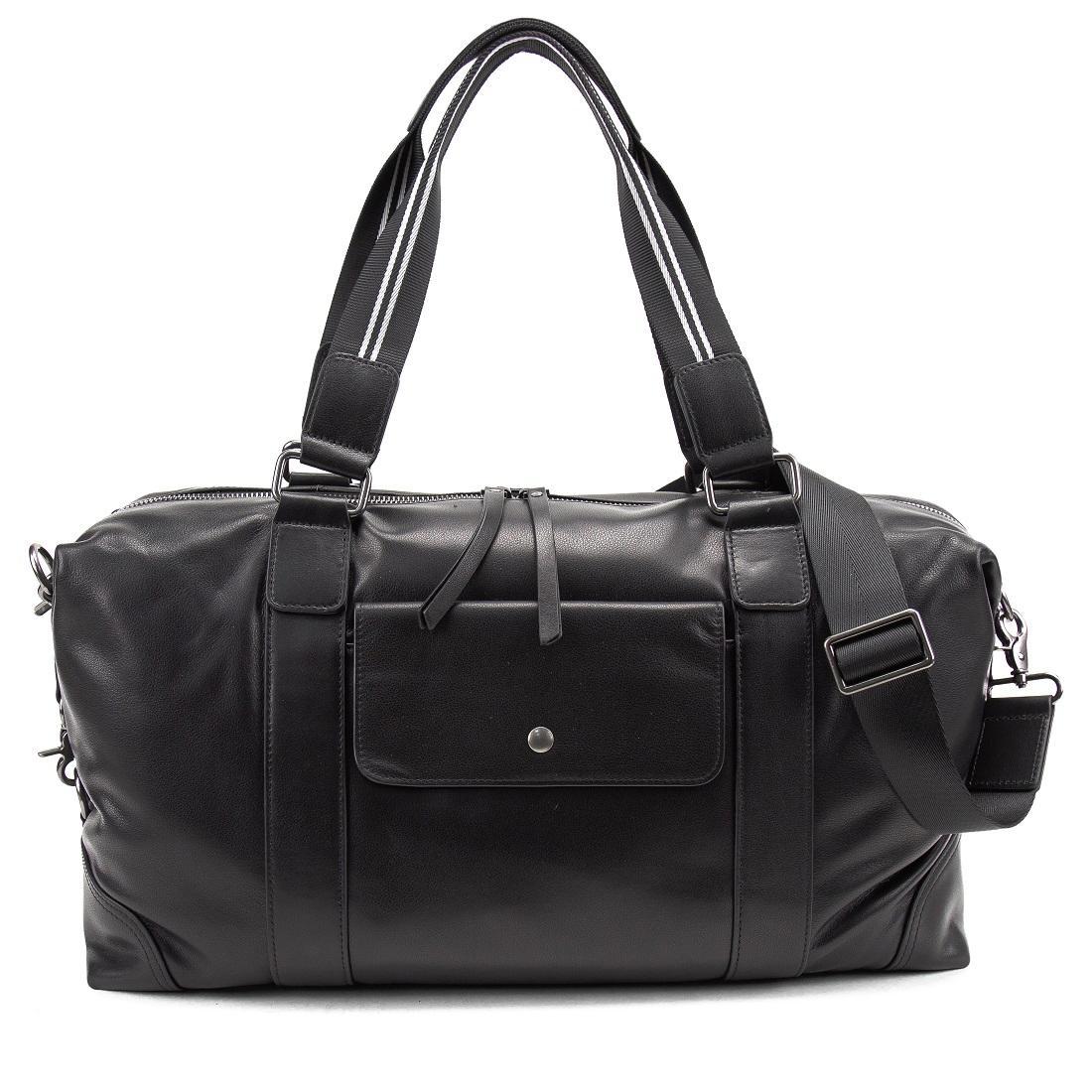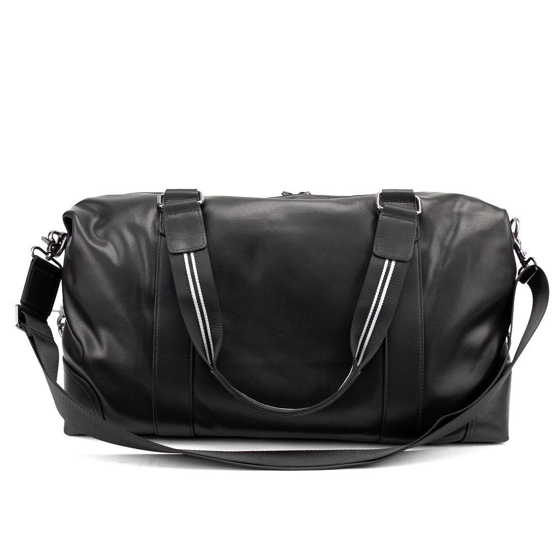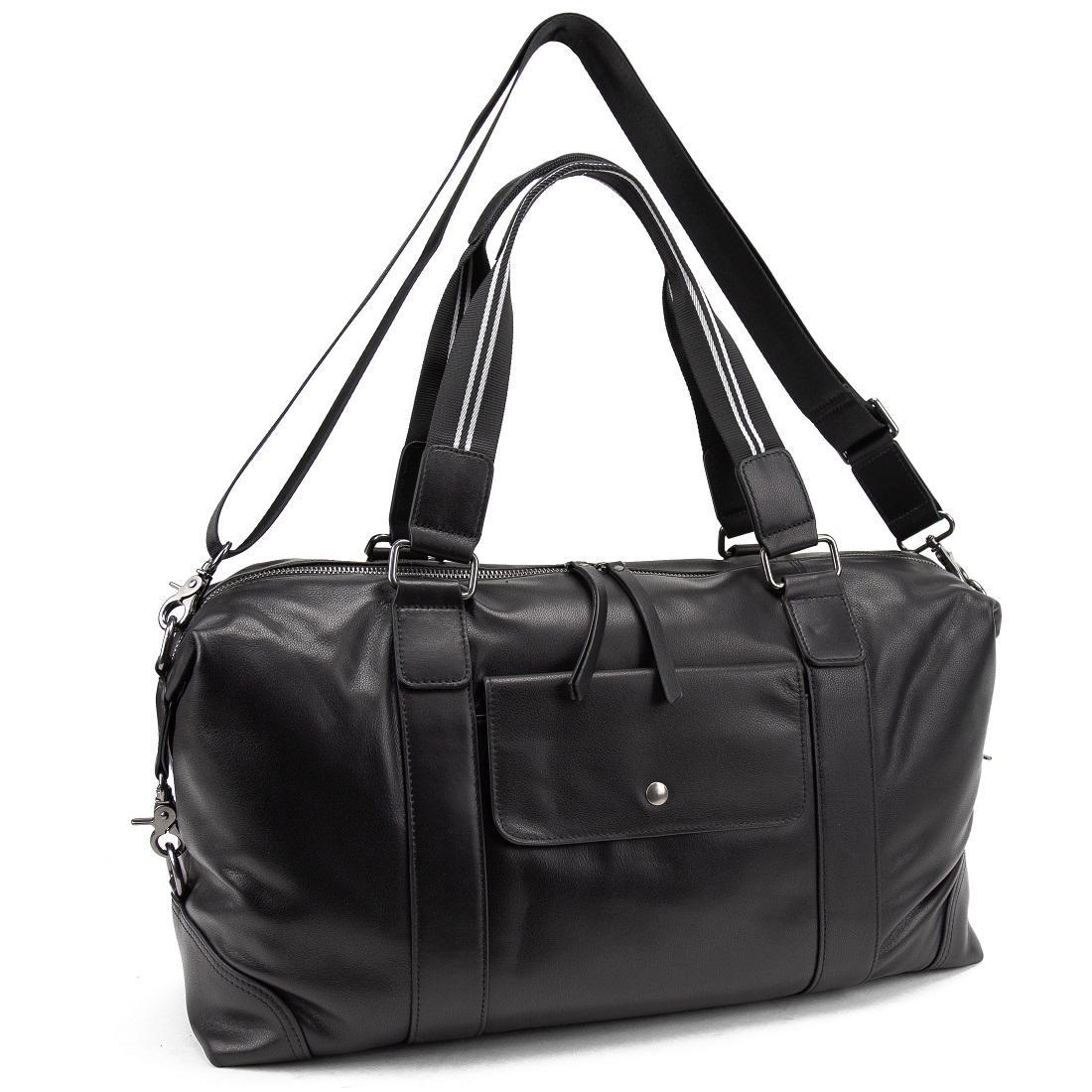 Вместительная дорожная сумка черного цвета из натуральной кожи.