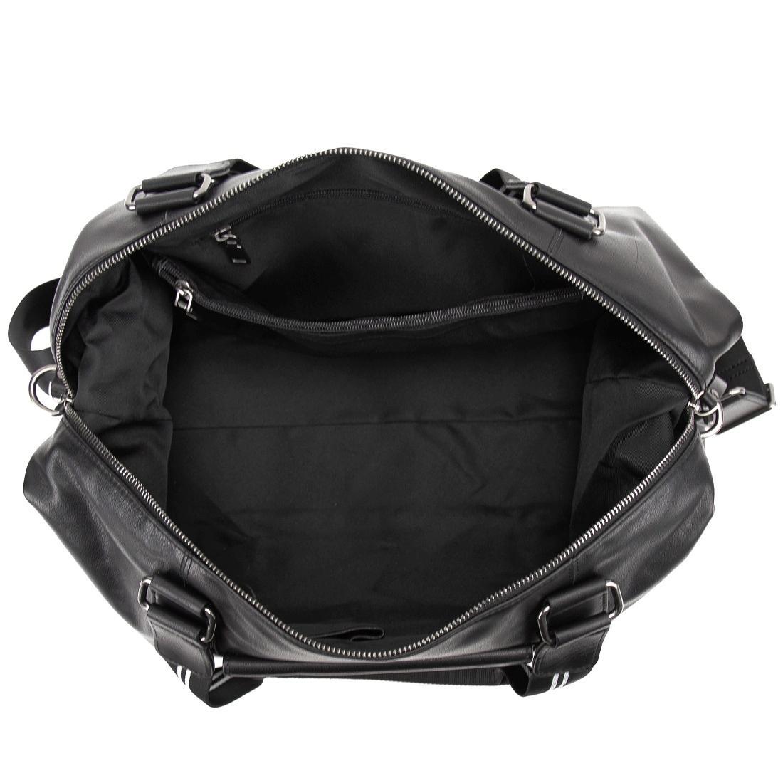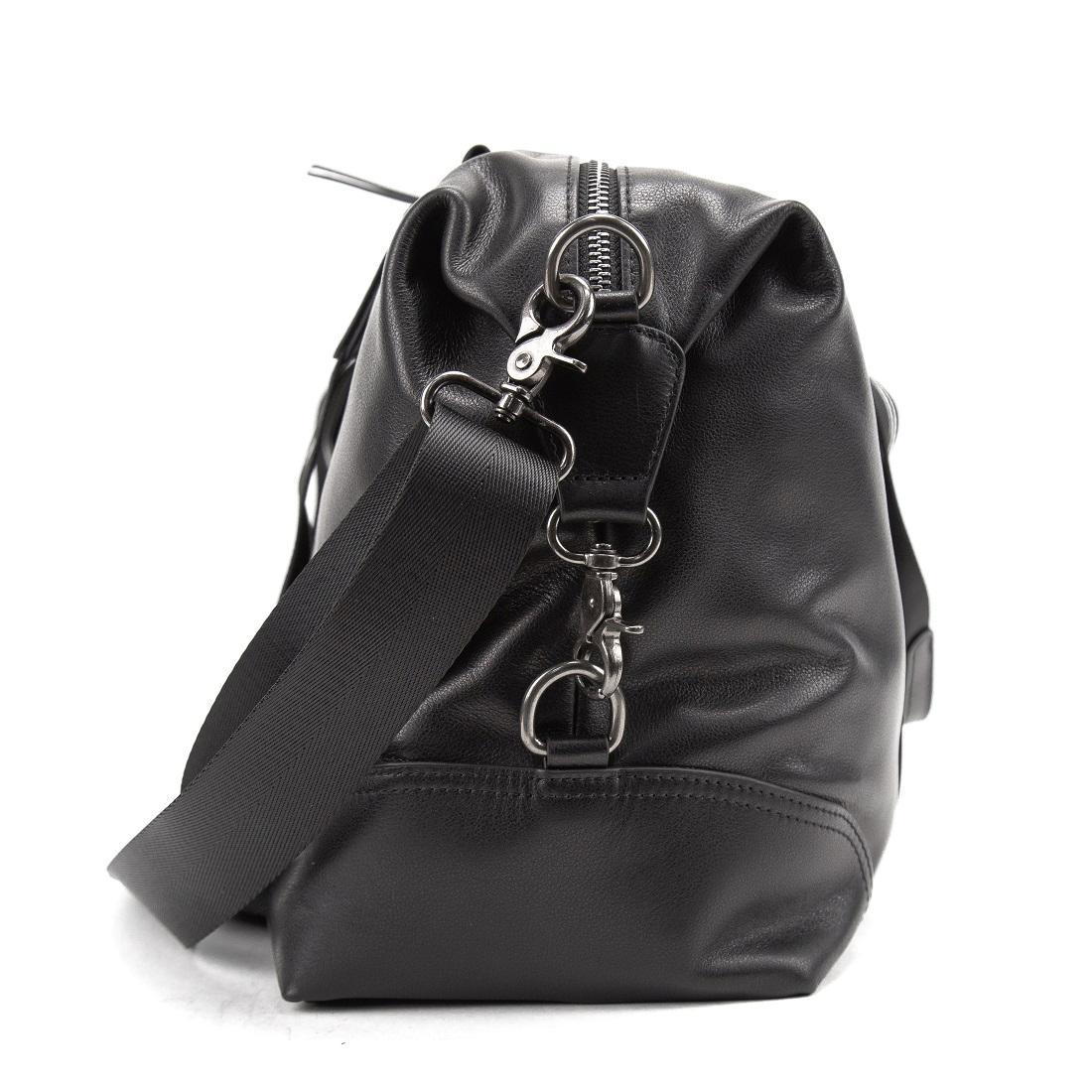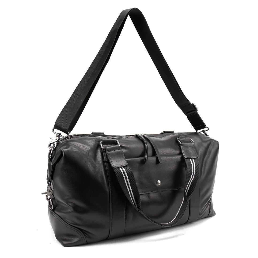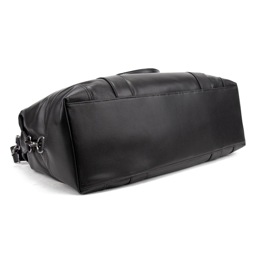 Вместительная дорожная сумка черного цвета из натуральной кожи.