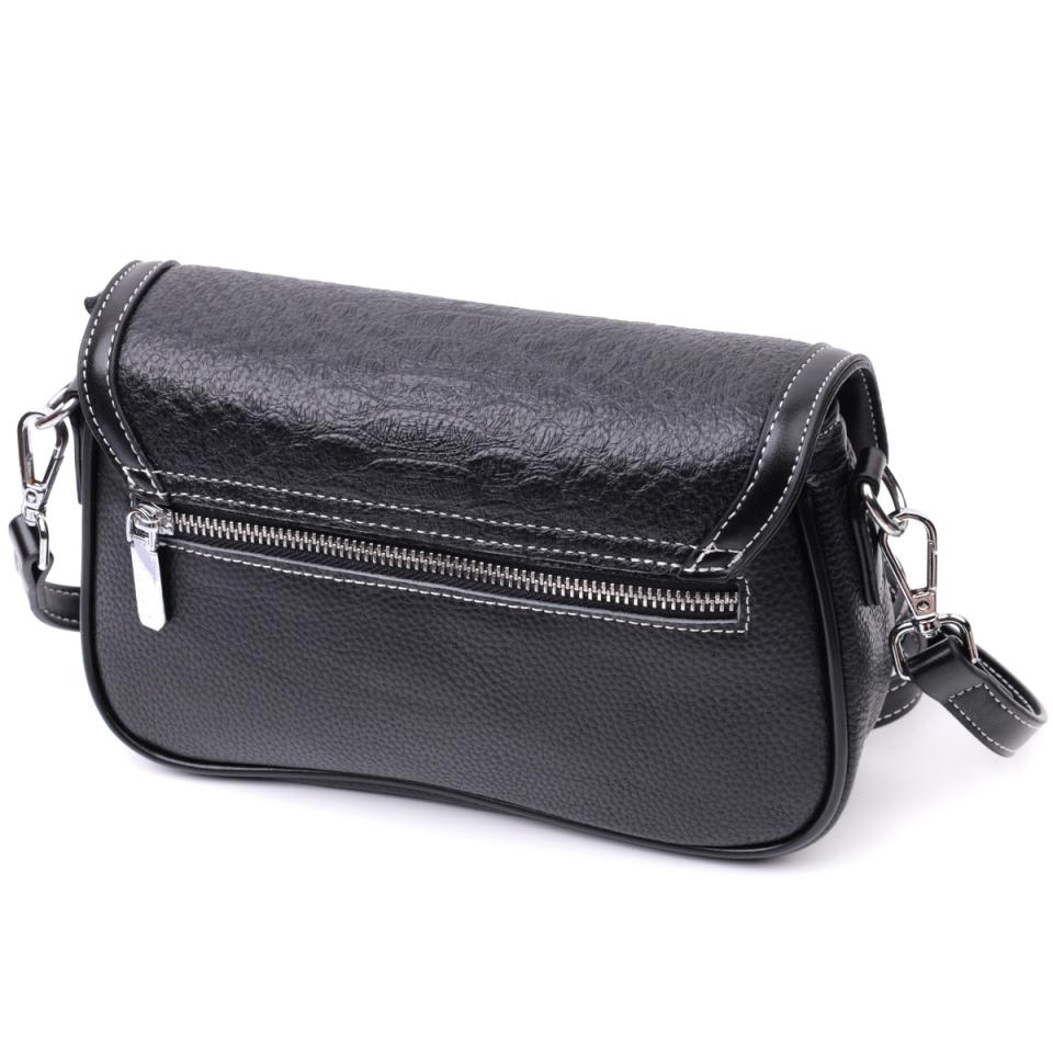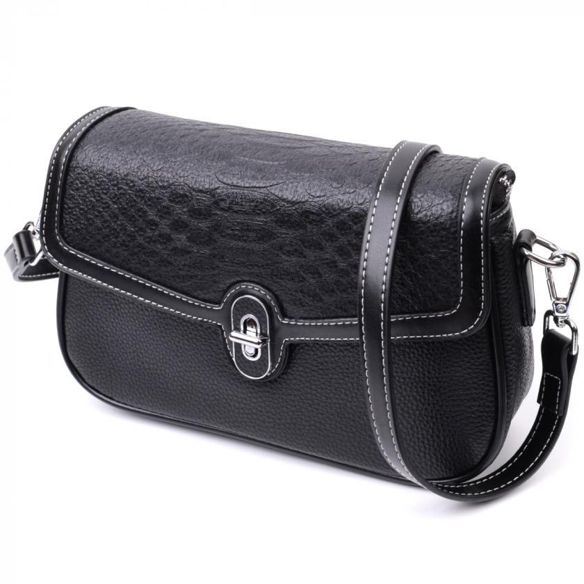 Описание: Элегантная женская сумка с фактурным клапаном из натуральной кожи Vintage 22624 Черная