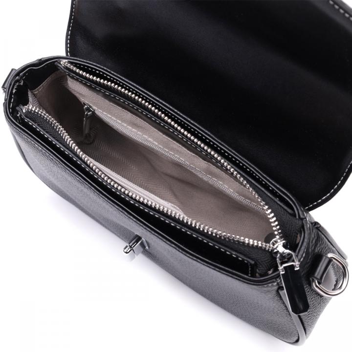 Характеристики: Элегантная женская сумка с фактурным клапаном из натуральной кожи Vintage 22624 Черная