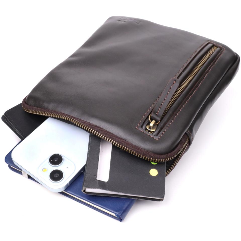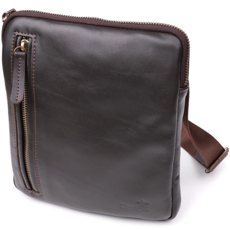 Элегантная мужская сумка из гладкой натуральной кожи Shvigel 23150 Коричневый