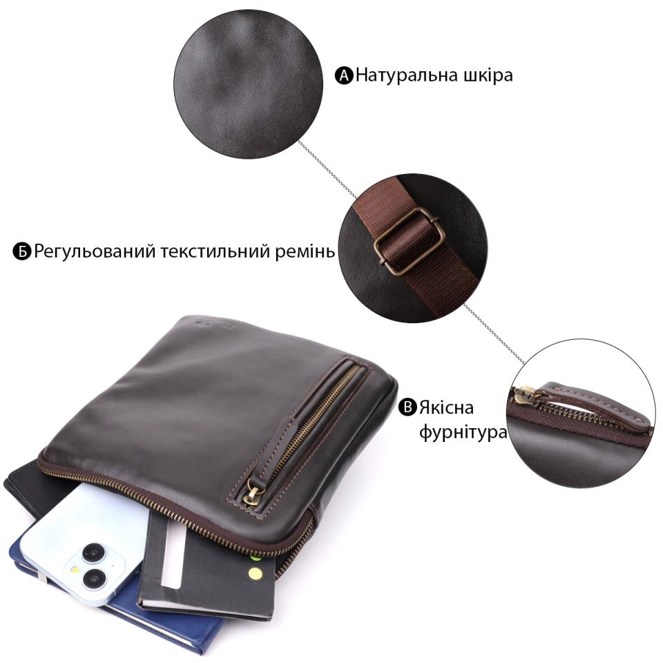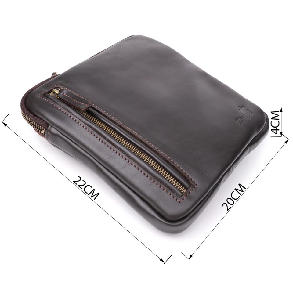 Эта мужская вертикальная сумка изготовлена украинским брендом SHVIGEL, который известен качественными кожаными аксессуарами и вниманием к деталям. Натуральная гладкая кожа насыщенного коричневого цвета подчеркивает элегантность, а фирменное тиснение логотипа подтверждает оригинальность изделия.