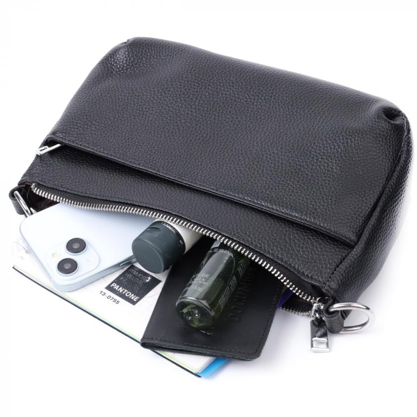 Элегантная сумка для женщин на три отделения из натуральной кожи Vintage 22805 Черный