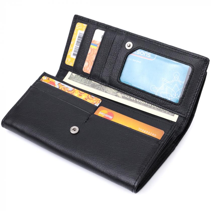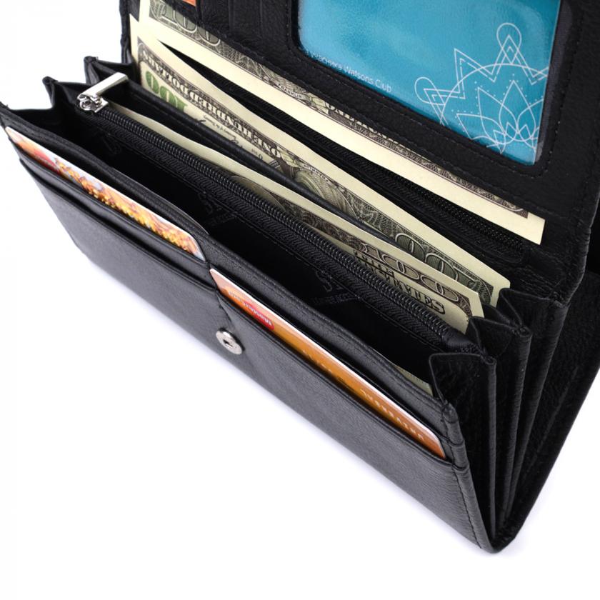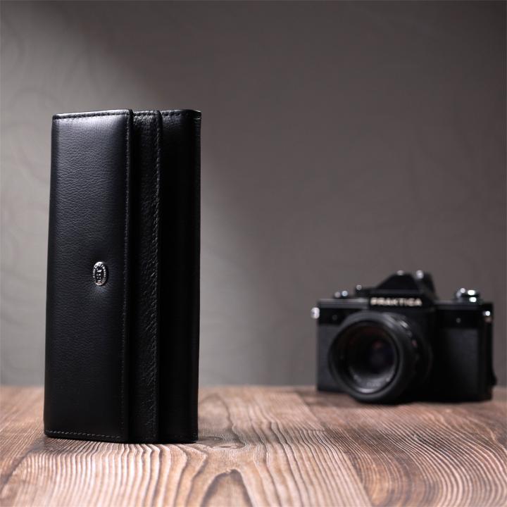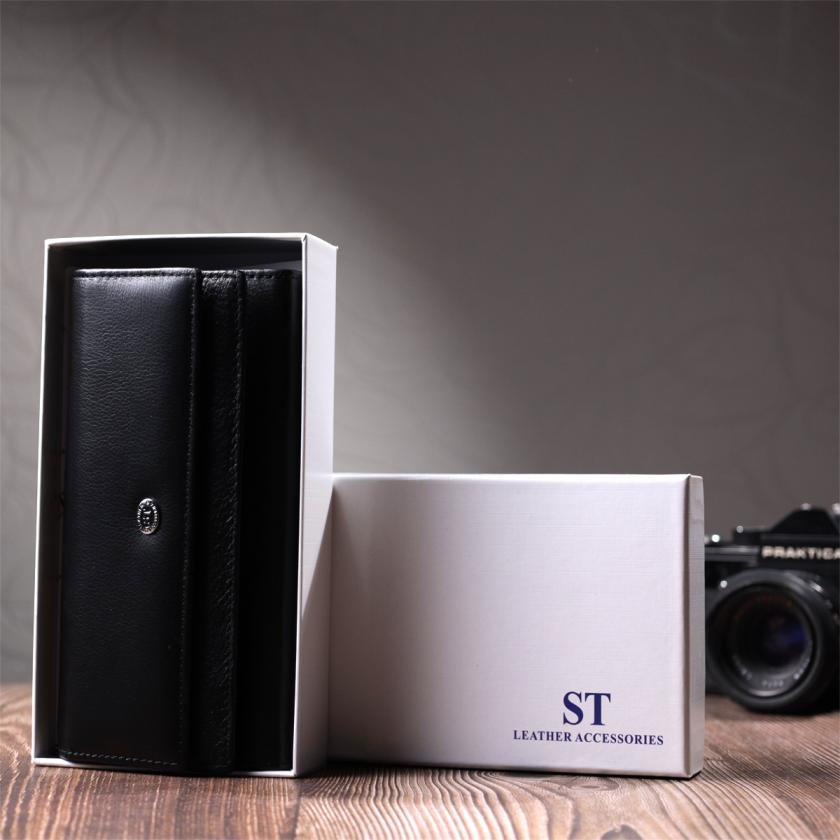 Отзывы: Функциональный женский кошелек с двумя клапанами из натуральной кожи ST Leather 22696 Черный