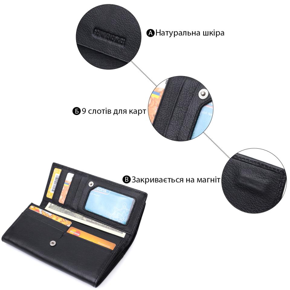 Характеристики: Функциональный женский кошелек с двумя клапанами из натуральной кожи ST Leather 22696 Черный