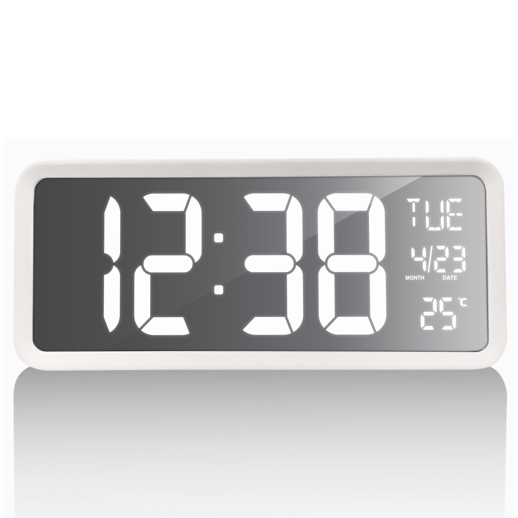 Один з небагатьох годинників з LED дисплеєм Technoline WS8130 White не має обмежень щодо кута огляду, тобто інформацію на екрані видно з будь-якої точки кімнати під кутом до 180º. Годинник має настінне кріплення і складану підставку для встановлення на горизонтальні поверхні. Великий дисплей відмінно підходить як для великих просторих приміщень, залів та офісів, так і для сучасних домашніх інтер'єрів. Дзеркальний екран забезпечує чітке і контрастне відображення часу, дати, дня тижня і температури в приміщенні, а вмонтований сенсор освітлення автоматично скоригує підсвітку дисплея у відповідності з освітленням в кімнаті. Живиться годинник від блоку живлення з USB-виходом та оснащений кабелем довжиною 3 м. Для резервного живлення використовуються дві батарейки АА.