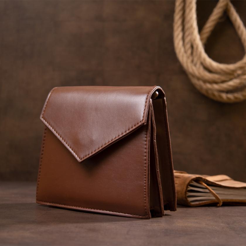 Отзывы: Горизонтальная сумка угловидная из кожзаменителя Vintage sale_14933 Коричневая