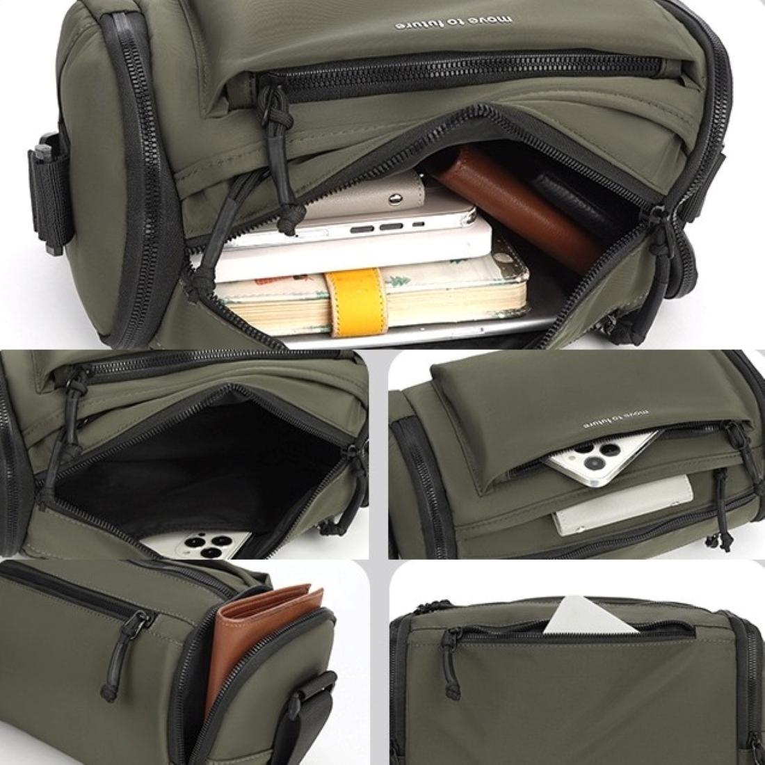 Стильная и практичная сумка через плечо — идеальный выбор для мужчин, которые ценят функциональность и современный дизайн. Благодаря форме «баул» модель очень вместительная, несмотря на компактные размеры.