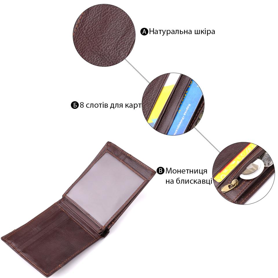 Характеристики: Горизонтальный стильный кошелек из натуральной кожи Vintage 22888 Коричневый
