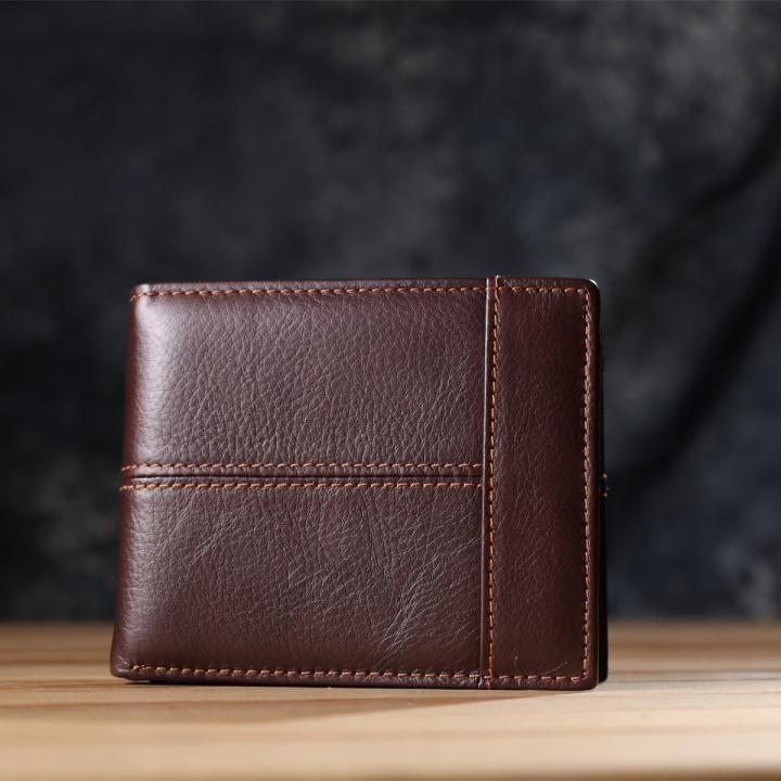 Качественный мужской бумажник, выполненный из натуральной кожи премиального качества. Аксессуар аккуратно прошит сверхпрочной коричневой нитью, что придаёт изделию дополнительную прочность и подчёркивает его элегантный внешний вид. Бумажник приятный на ощупь, с продуманной до мелочей внутренней организацией. Компактный и удобный, он легко помещается в карман или сумку, обеспечивая быстрый доступ ко всем необходимым вещам. Модель складывается пополам и не имеет застёжки, что делает использование ещё более удобным и практичным. Внутри гармонично сочетаются элементы из натуральной кожи и плотного текстиля, что увеличивает срок службы аксессуара. Бумажник поставляется в белом текстильном пылезащитном чехле, что делает его отличным вариантом для подарка.
