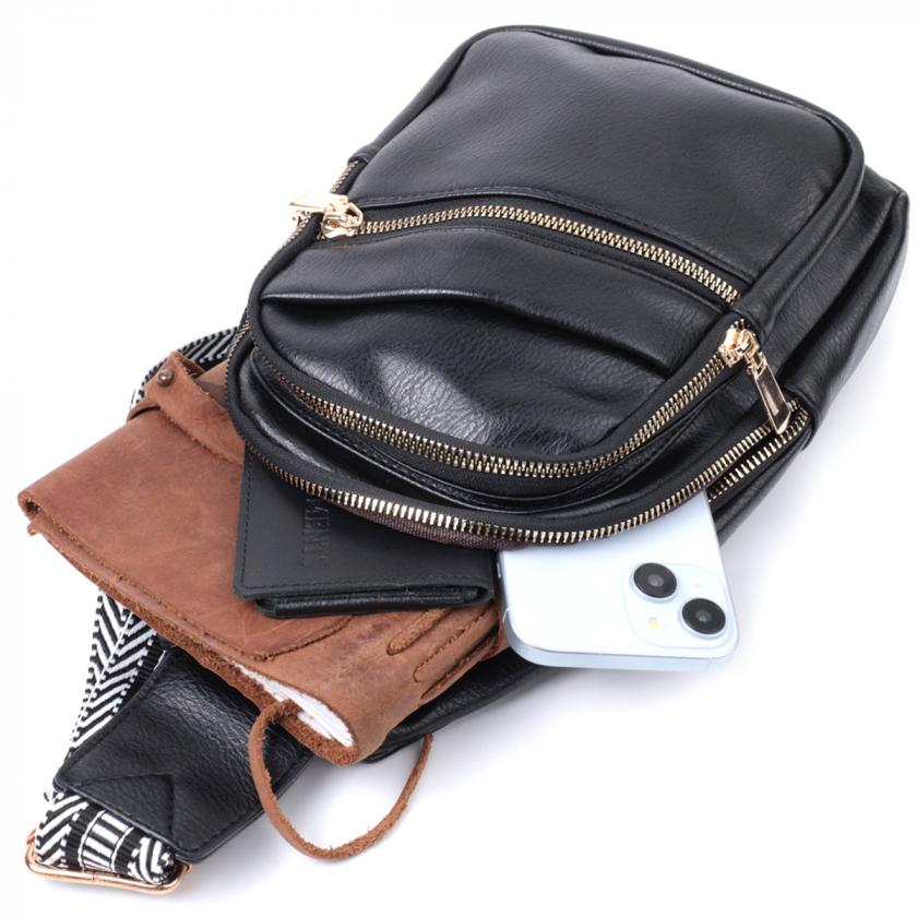 Интересная женская сумка с одной лямкой через плечо из экокожи Vintage 22759 Черный