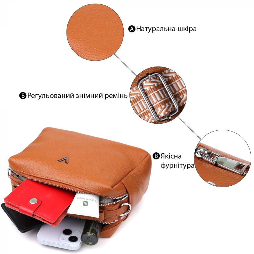 Характеристики: Женская сумка из натуральной кожи с двойным внутренним пространством Vintage 22921 Рыжий