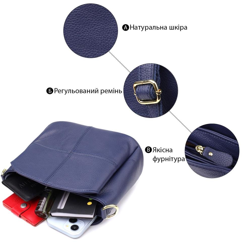 Описание: Женская сумка из натуральной кожи с тремя отделениями Vintage 22976 Синий