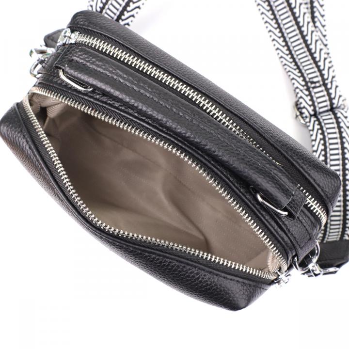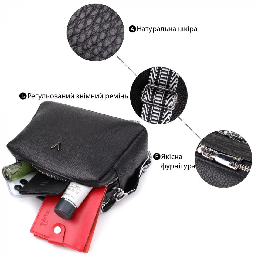 Стильная женская кожаная сумка черного цвета — практичность, комфорт и современный акцент. Эта элегантная модель выполнена из натуральной кожи в универсальном черном цвете, который легко сочетается с любой одеждой и подходит для любого сезона. Лаконичный дизайн дополняется функциональностью и износостойкими элементами, делая сумку отличным вариантом на каждый день.