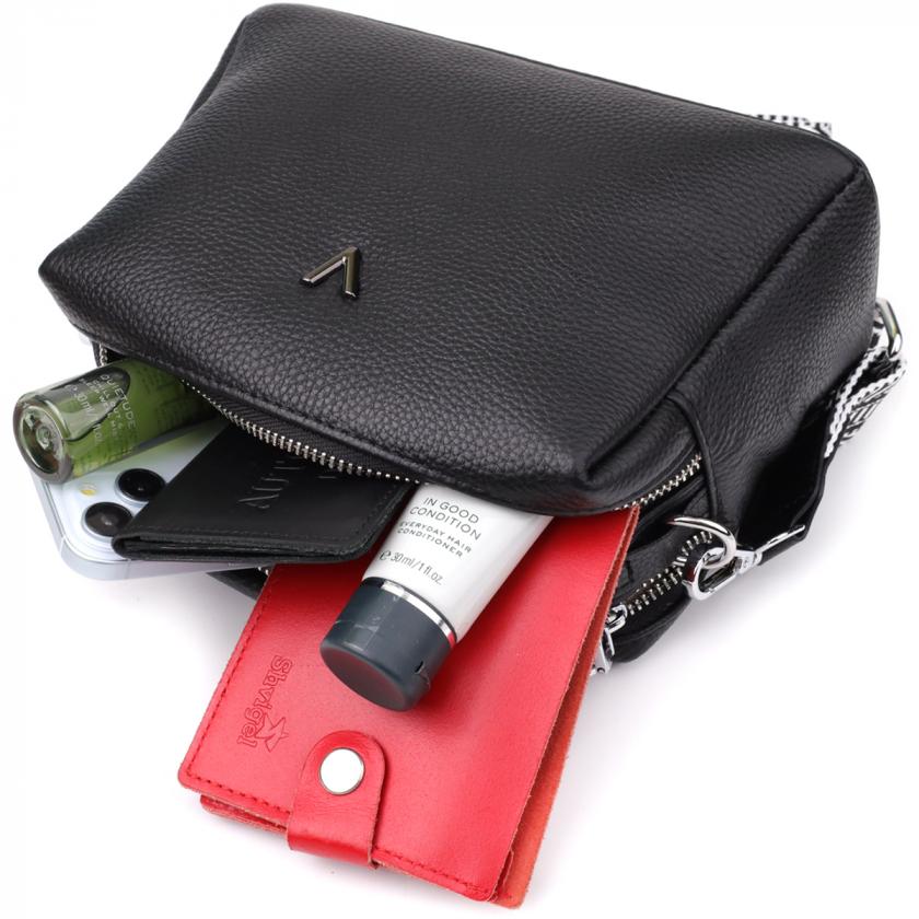 Характеристики: Женская сумка на два отделения из натуральной кожи Vintage 22919 Черный