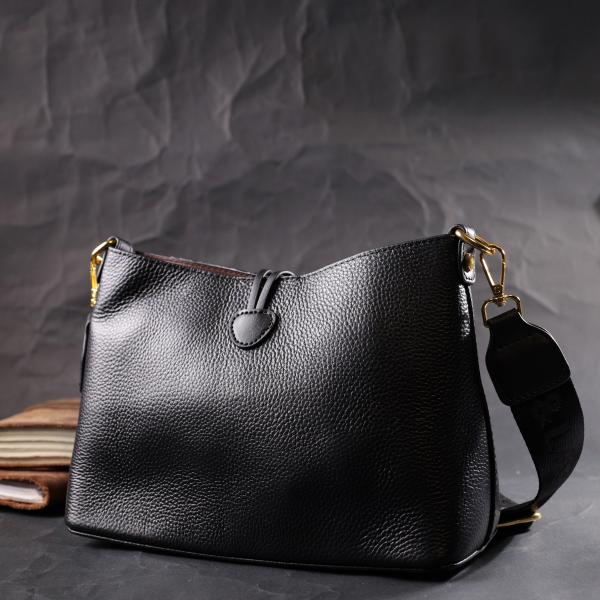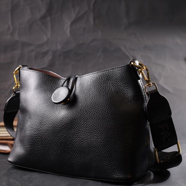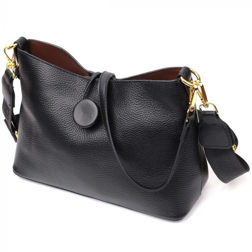 Отзывы: Женская сумка с оригинальной застежкой пуговкой из натуральной кожи Vintage 22319 Черная