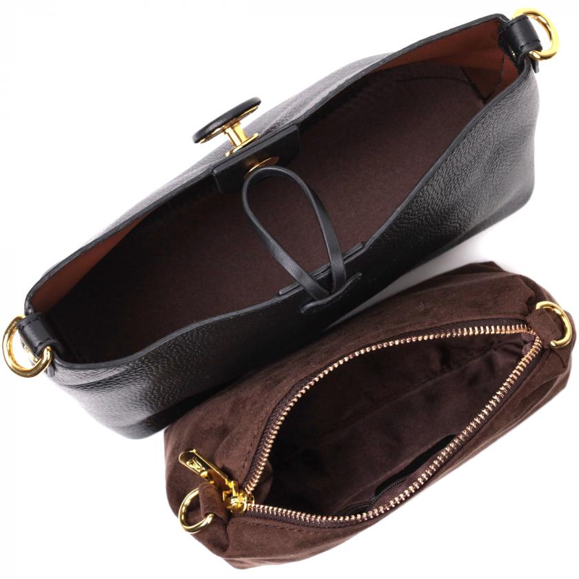 Характеристики: Женская сумка с оригинальной застежкой пуговкой из натуральной кожи Vintage 22319 Черная