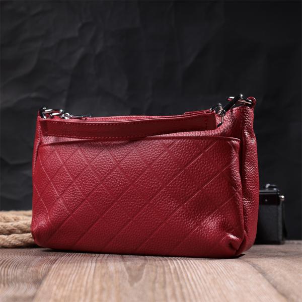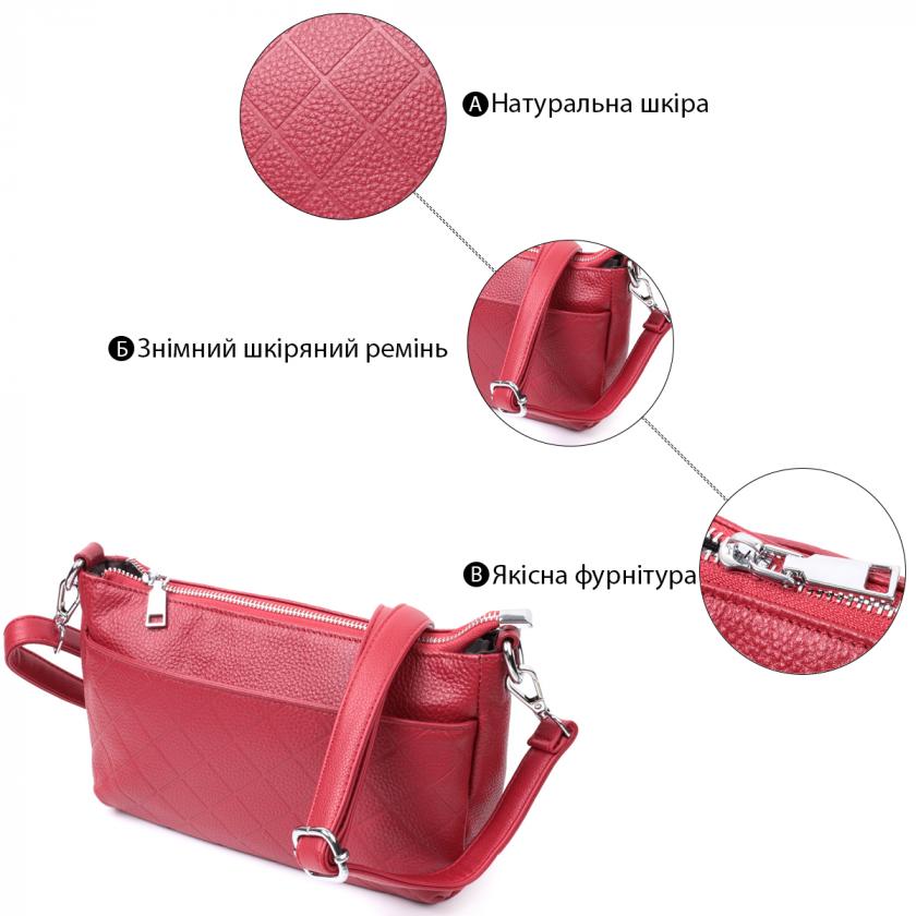 Характеристики: Женская сумка среднего размера на три отделения из натуральной кожи Vintage 22803 Красный
