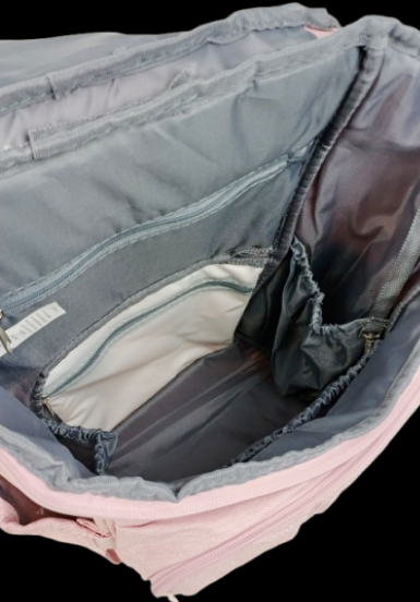 Откидной карман на молнии на лицевой стороне рюкзака. Внутри расположено четыре открытых кармашка (один из которых сетчатый).