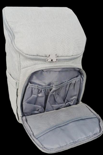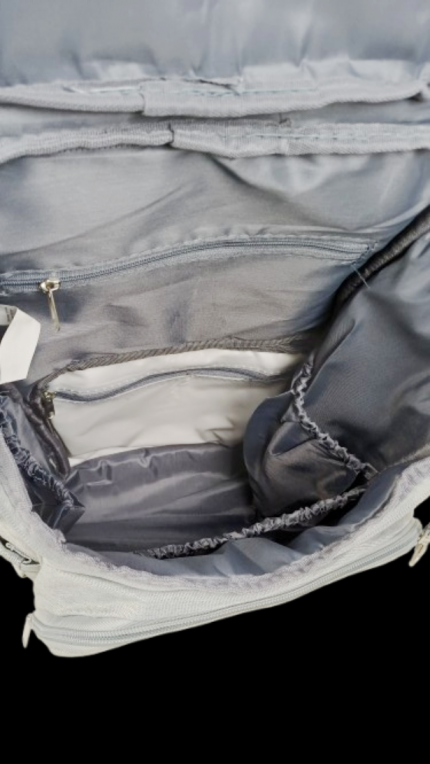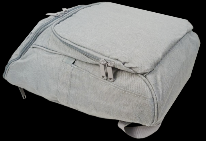 Откидной карман на молнии на лицевой стороне рюкзака. Внутри расположено четыре открытых кармашка (один из которых сетчатый).