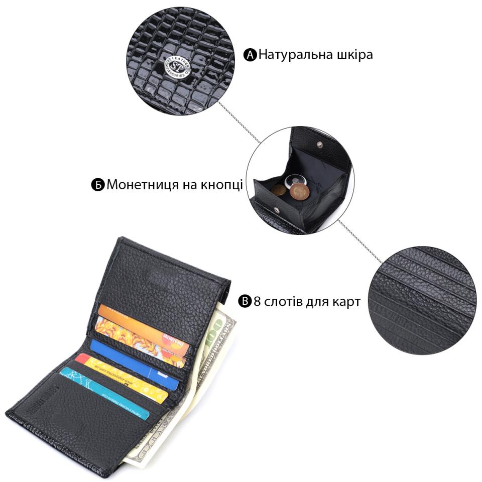 Характеристики: Женский компактный кошелек из натуральной лакированной кожи ST Leather 22688 Черный