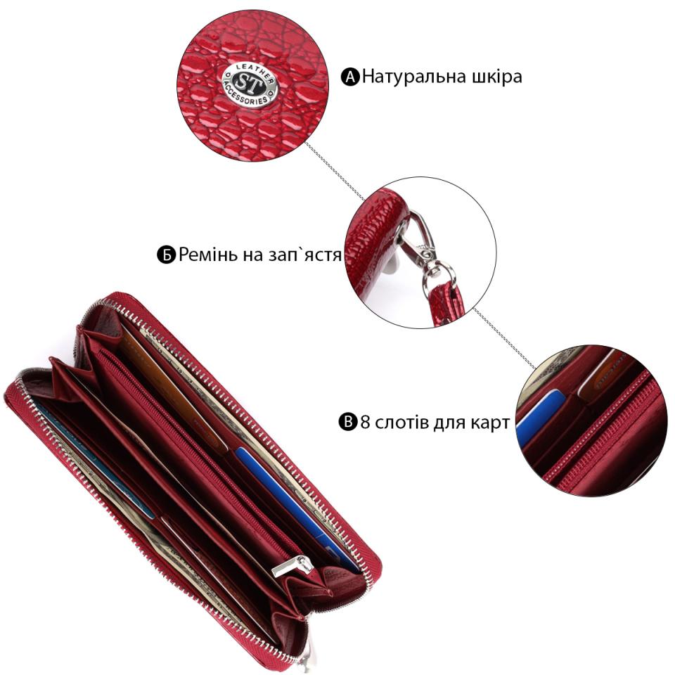 Характеристики: Женский лакированный кошелек на молнии из натуральной кожи ST Leather 22677 Красный