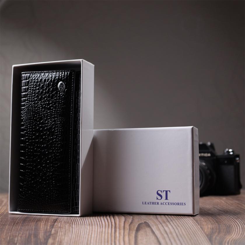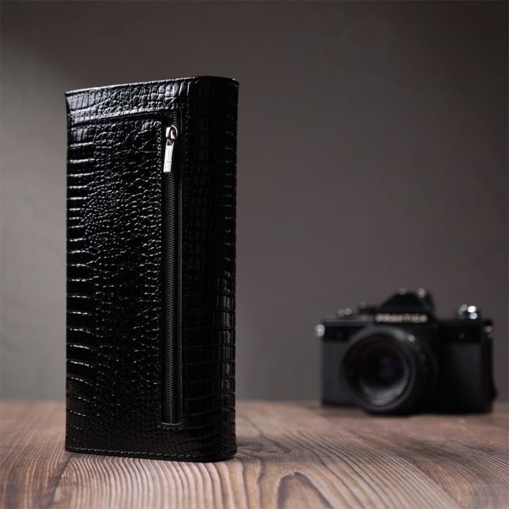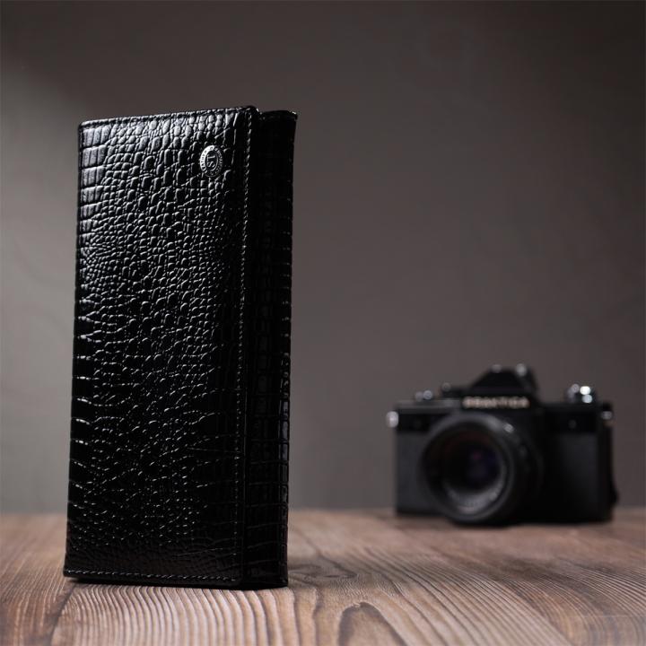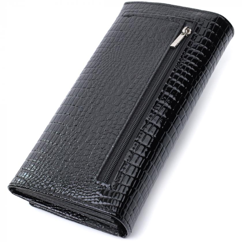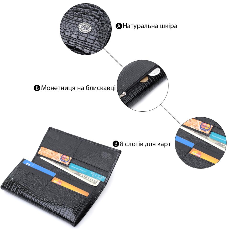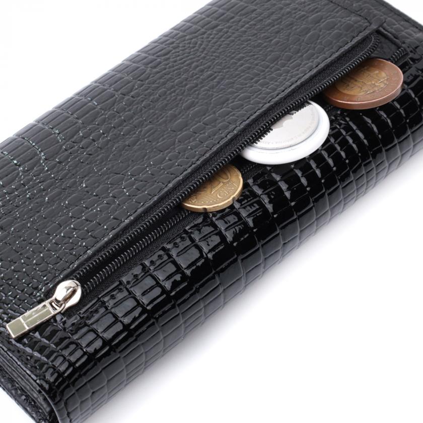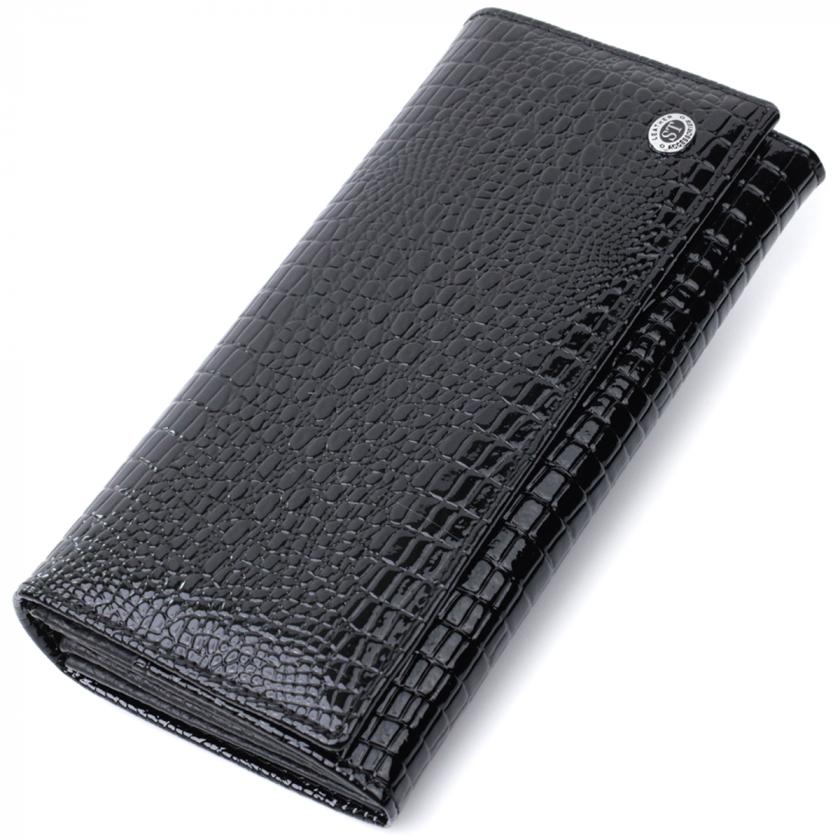 Характеристики: Женский лакированный кошелек с фактурой под рептилию из натуральной кожи ST Leather 22718 Черный