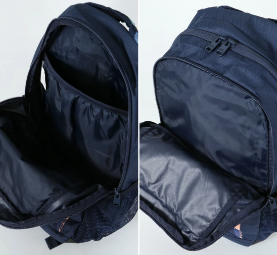 На лицевой стороне рюкзака расположено два кармана на молнии.