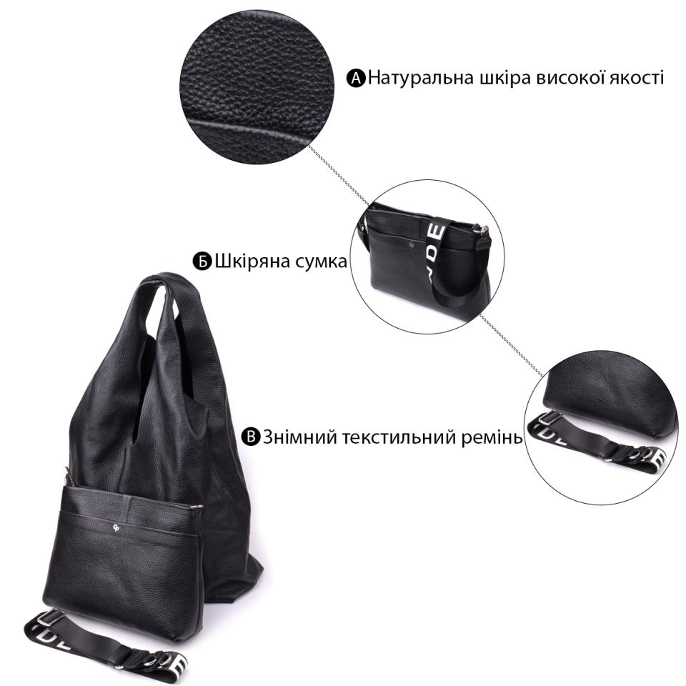 Женский шоппер 2 в 1 из натуральной кожи GRANDE PELLE 22881 Черный