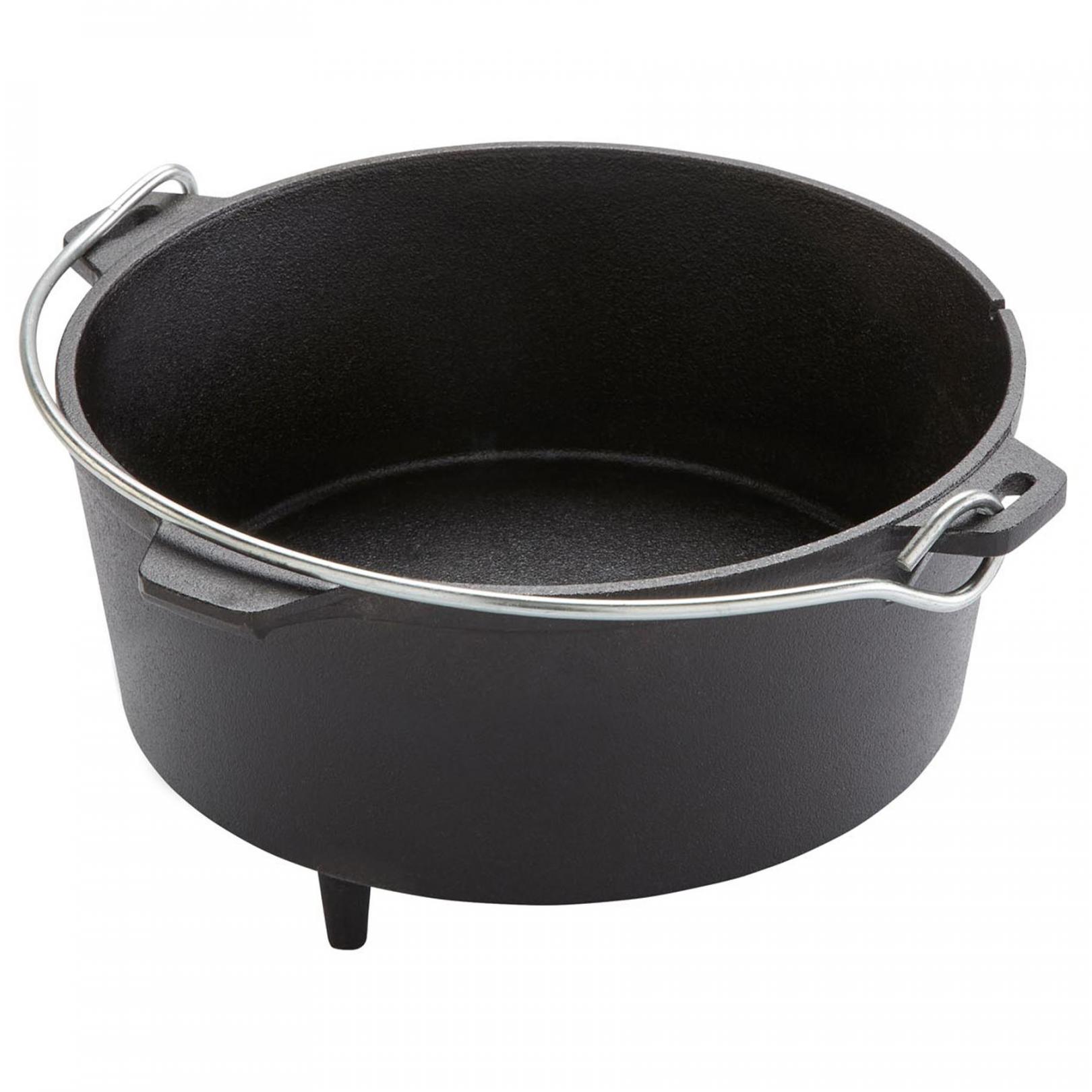 Матеріал казана - масивний литий чавун, який забезпечує рівномірний розподіл тепла по всій поверхні. Це дозволяє готувати страви без пригорання та з мінімальним використанням жиру, а їжа зберігає свій природний смак і аромат. Великим плюсом є міцна сталева ручка, що дозволяє підвішувати казан над багаттям — це зручно для приготування страв у підвісному режимі. Діаметр 25 см і місткість 4 літрів роблять цю модель ідеальною як для невеликих компаній, так і для сімейного готування на природі. У такому казані легко приготувати плов, печеню, бограч, тушковані овочі або суп.