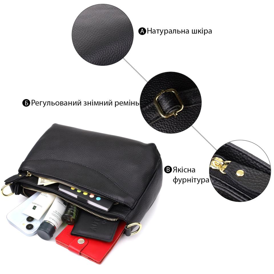 Эта чёрная кожаная сумка с формоустойчивым дном — идеальный выбор для женщин, которые ценят стиль, качество и функциональность в одном аксессуаре.