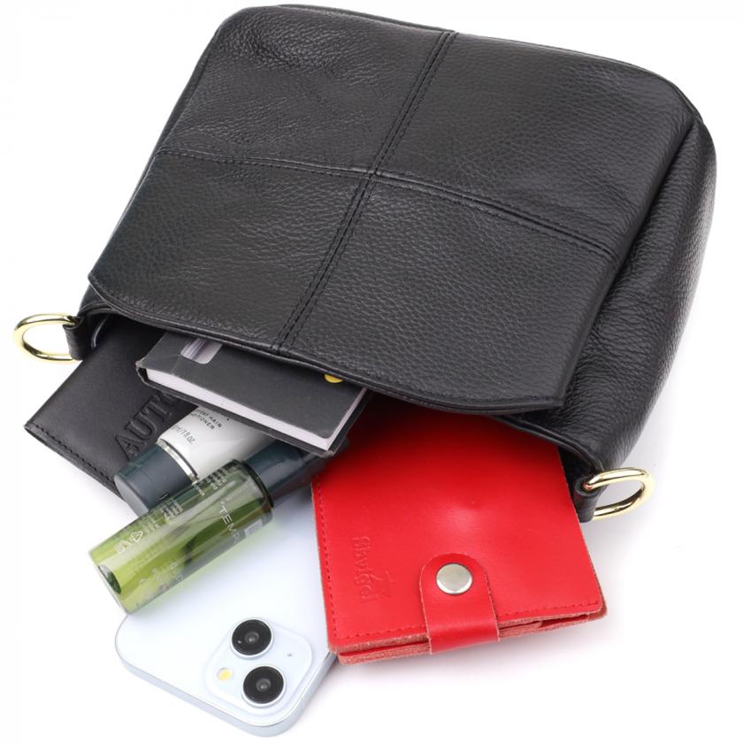 Эта черная кожаная сумка — идеальный выбор для женщины, ценящей строгую эстетику, практичность и высокое качество в каждой детали.