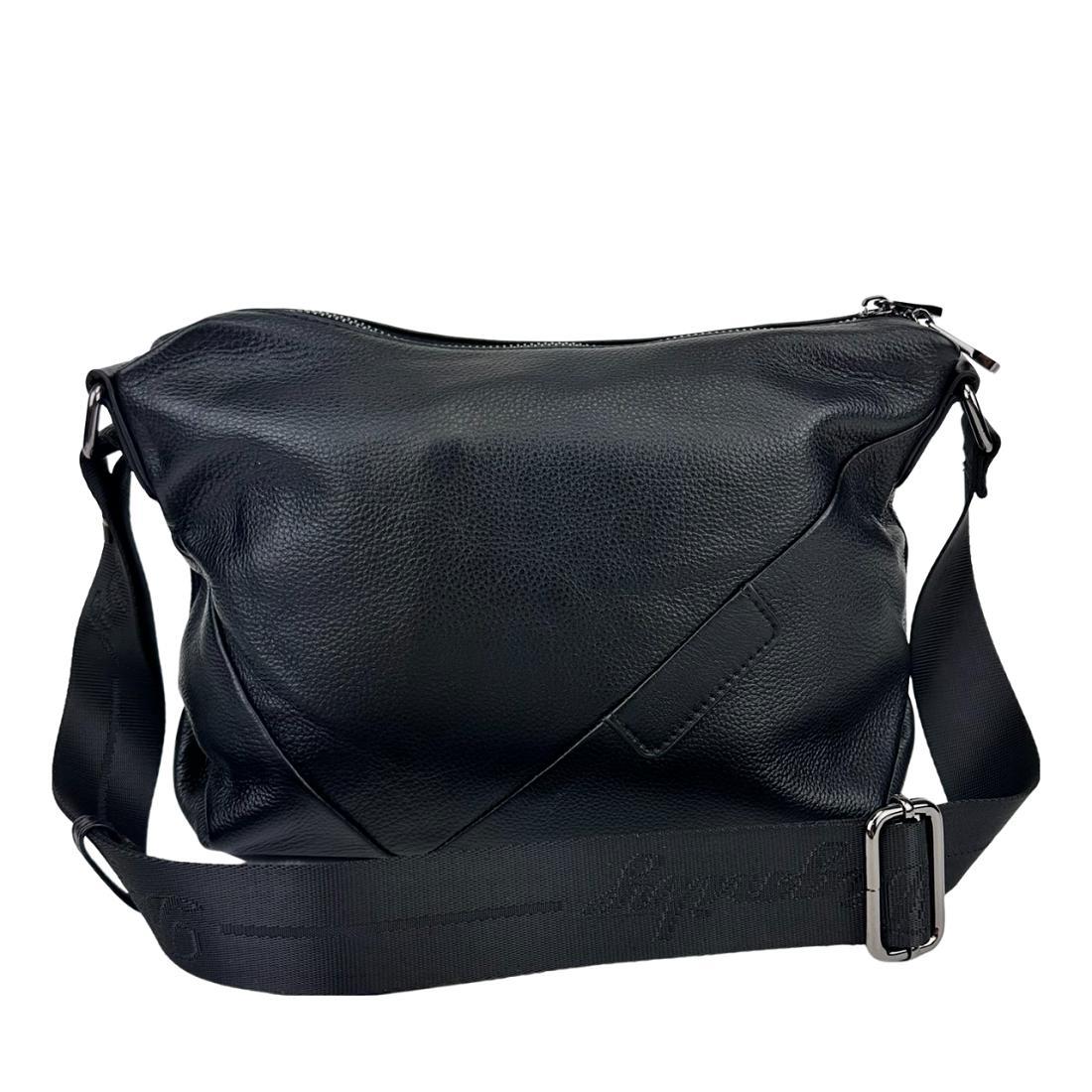 Кожаная женская сумка через черное плечо UnaBorsetta NB2-3401A