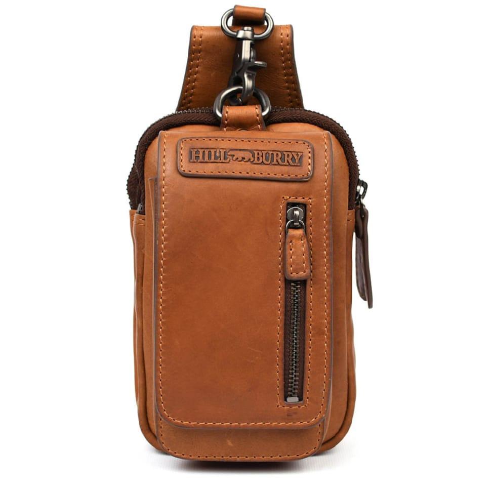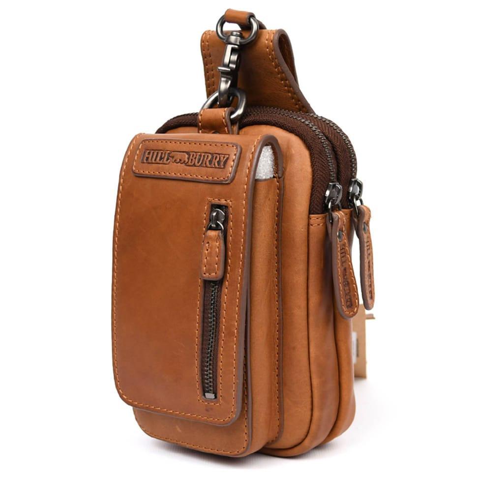 Кожаная напоясная сумка чехол, через плечо Hill Burry HB100B коньячная
