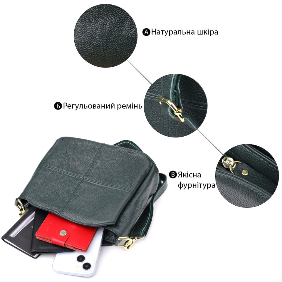 Характеристики: Кожаная сумка для женщин с тремя отделениями Vintage 22977 Зеленый
