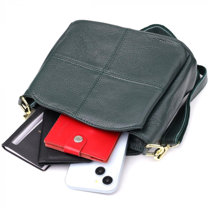 Эта зеленая кожаная сумка — выбор уверенной женщины, которая ценит качество, стиль и практичность в одном аксессуаре.