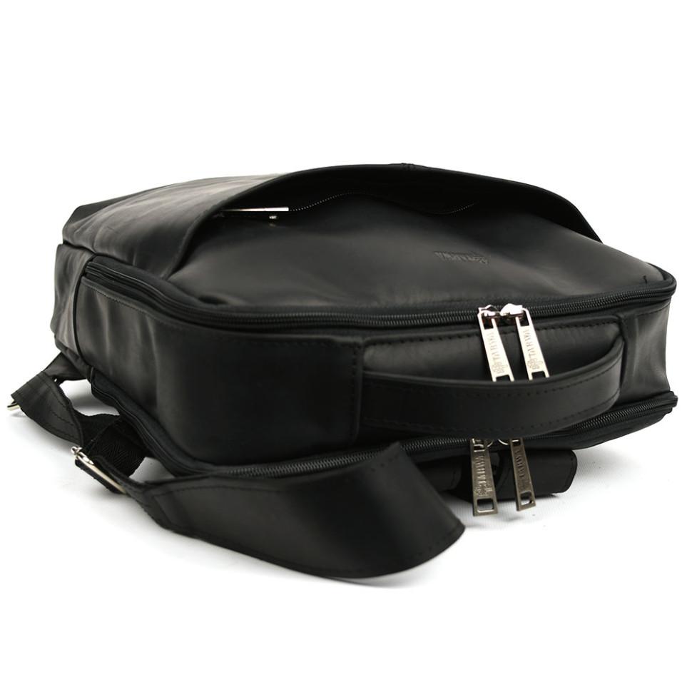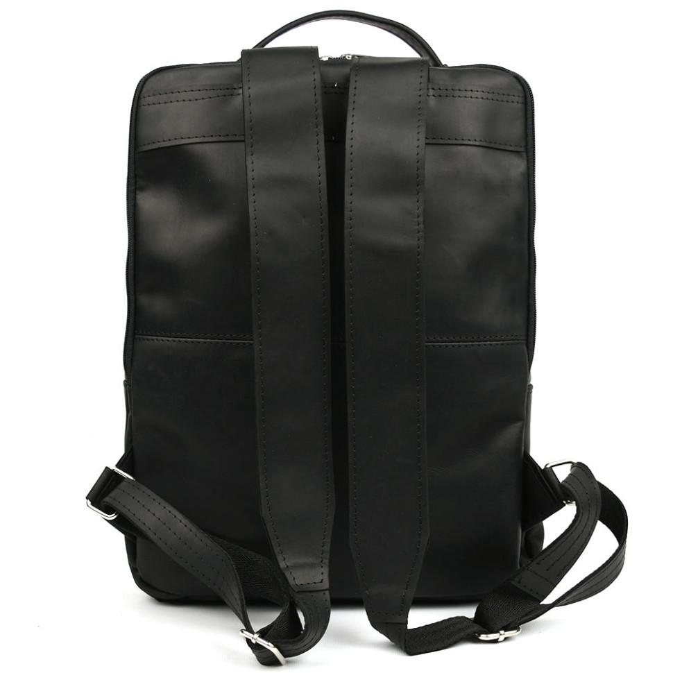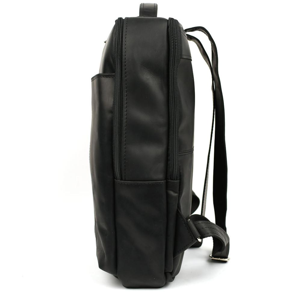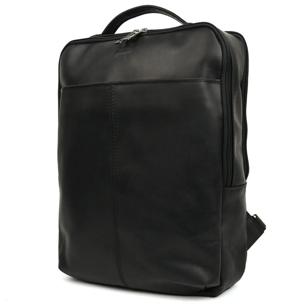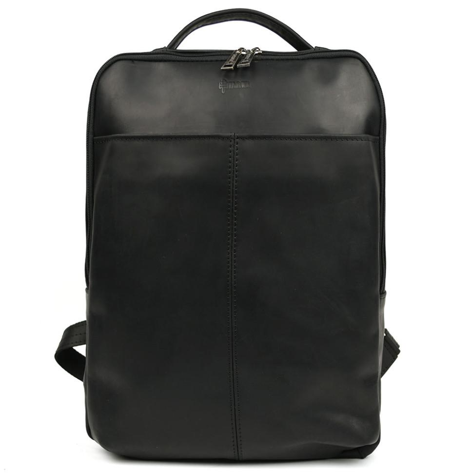 Кожаный мужской рюкзак черный RA-7281-3md с передним карманом на молнии