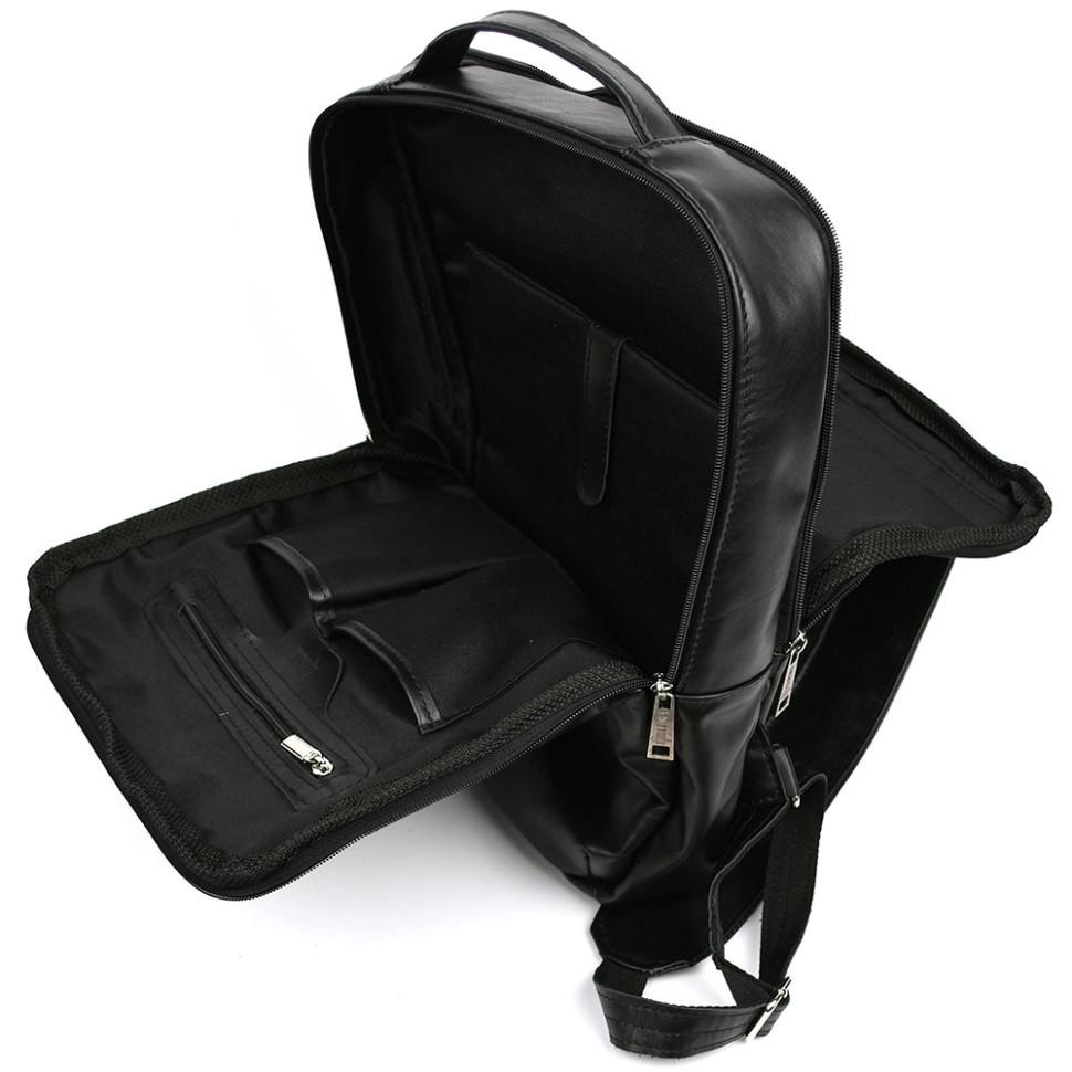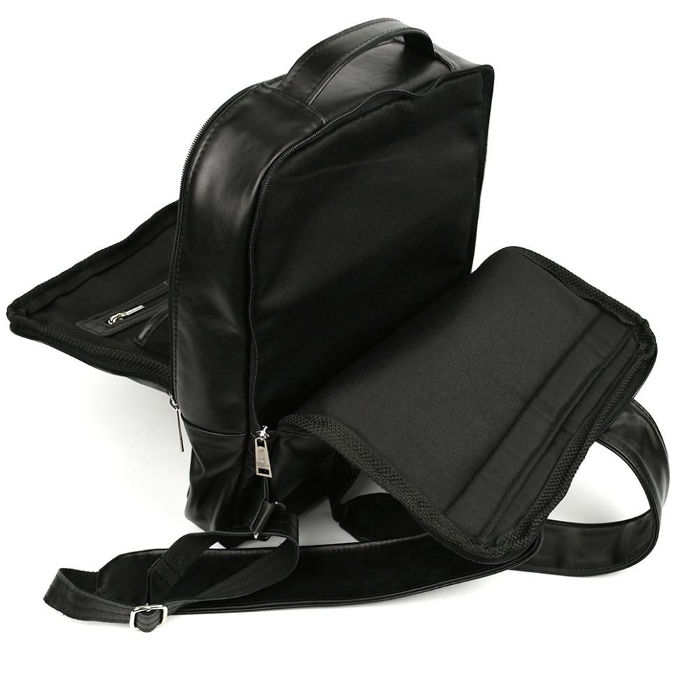 Кожаный мужской рюкзак черный RA-7281-3md с передним карманом на молнии. Удобный и практичный аксессуар, прекрасное решение для повседневного использования.