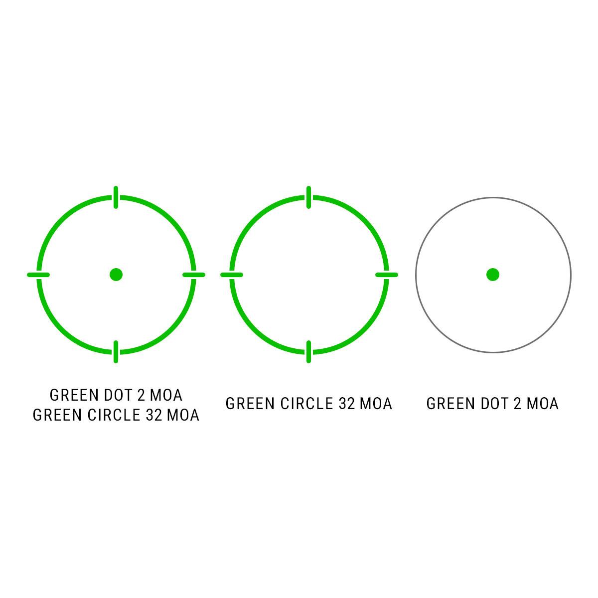 - Прицільна сітка: точка 2 МОА / коло 32 MOA / точка 2 МОА у колі 32 MOA