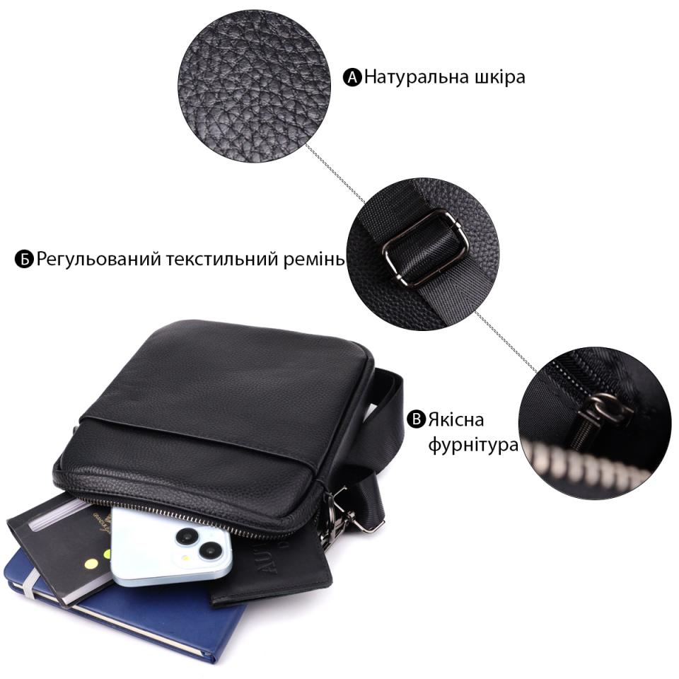 Характеристики: Компактная мужская сумка на плечо из натуральной кожи Vintage 23021 Черный
